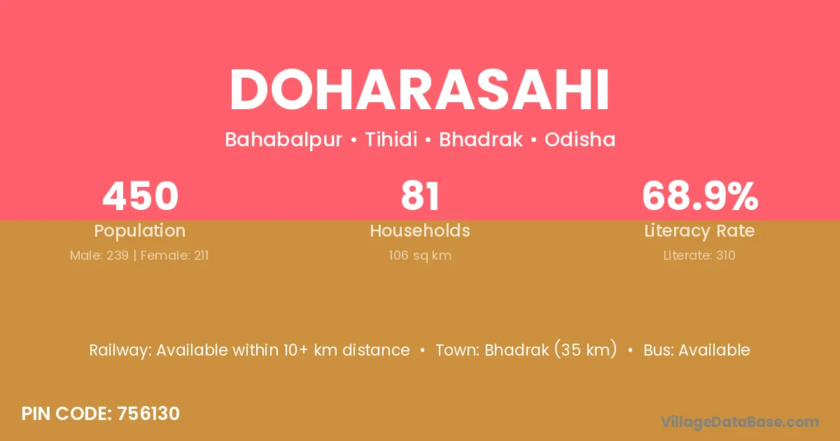 Bhadrak (35 km) is the nearest town to Doharasahi village for major economic activities and is located approximately 35 km away.