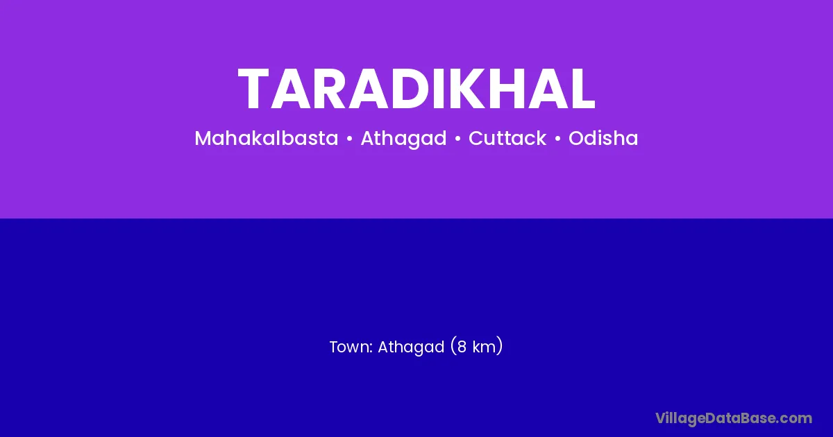 Taradikhal village is located in the Athagad Tehsil of the Cuttack district in Odisha .