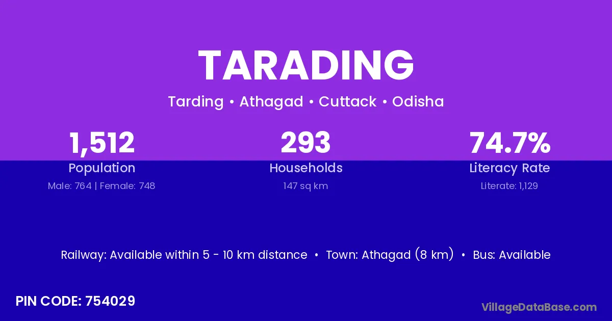 Athagad (8 km) is the nearest town to Tarading village for major economic activities and is located approximately 8 km away.