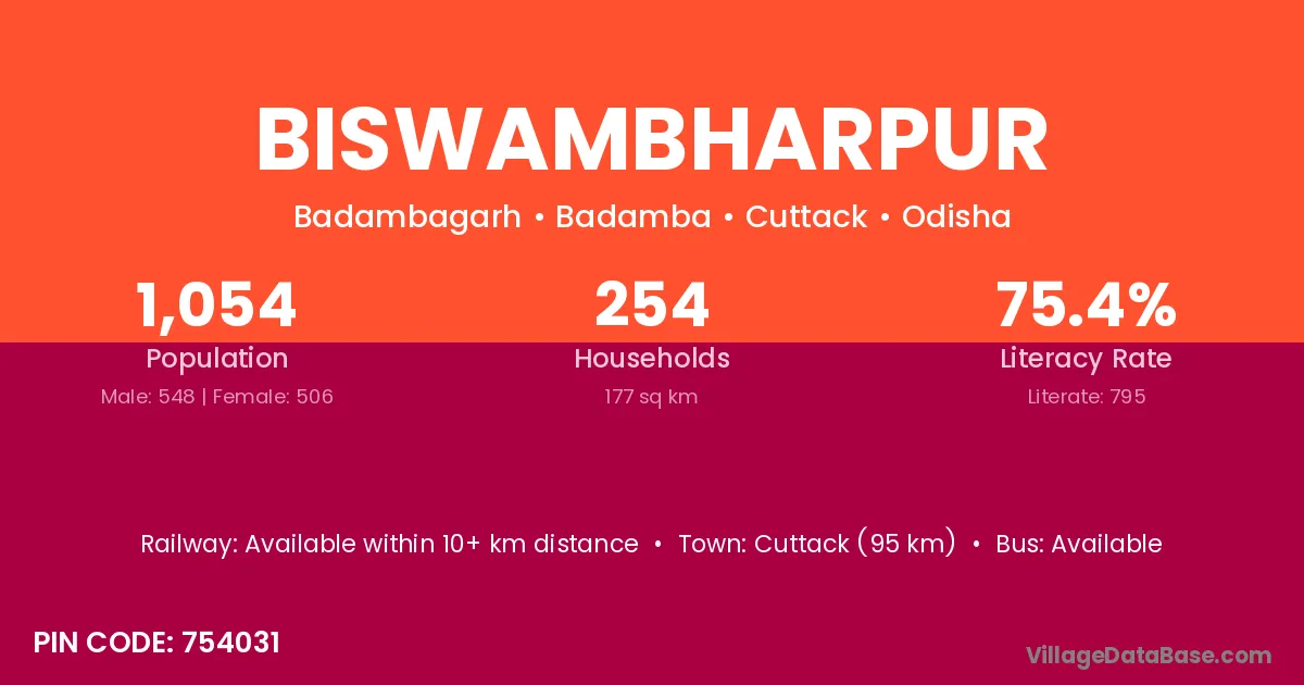 According to Census 2011 information, the village code of Biswambharpur village is 754031.