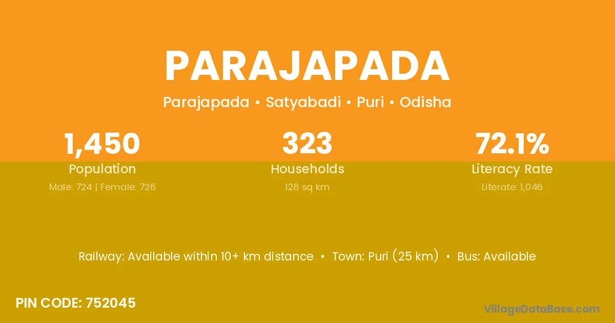 Badamba (5 km) is the nearest town to Parajapada village for major economic activities and is located approximately 5 km away.