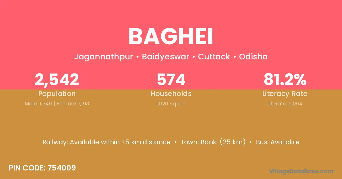 Banki (25 km) is the nearest town to Baghei village for major economic activities and is located approximately 25 km away.