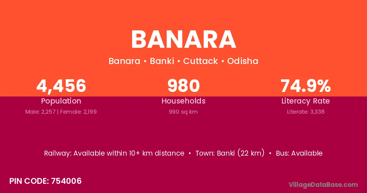 Banki (22 km) is the nearest town to Banara village for major economic activities and is located approximately 22 km away.