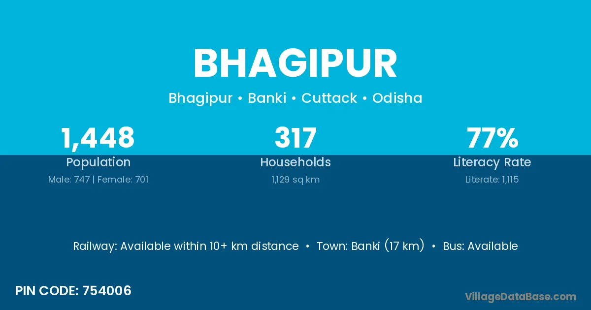 Banki (17 km) is the nearest town to Bhagipur village for major economic activities and is located approximately 17 km away.