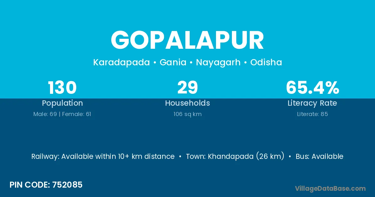 Banki (3 km) is the nearest town to Gopalapur village for major economic activities and is located approximately 3 km away.