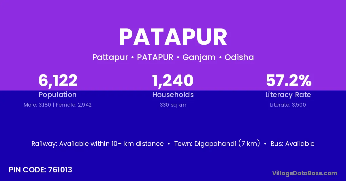 Banki (3 km) is the nearest town to Patapur village for major economic activities and is located approximately 3 km away.