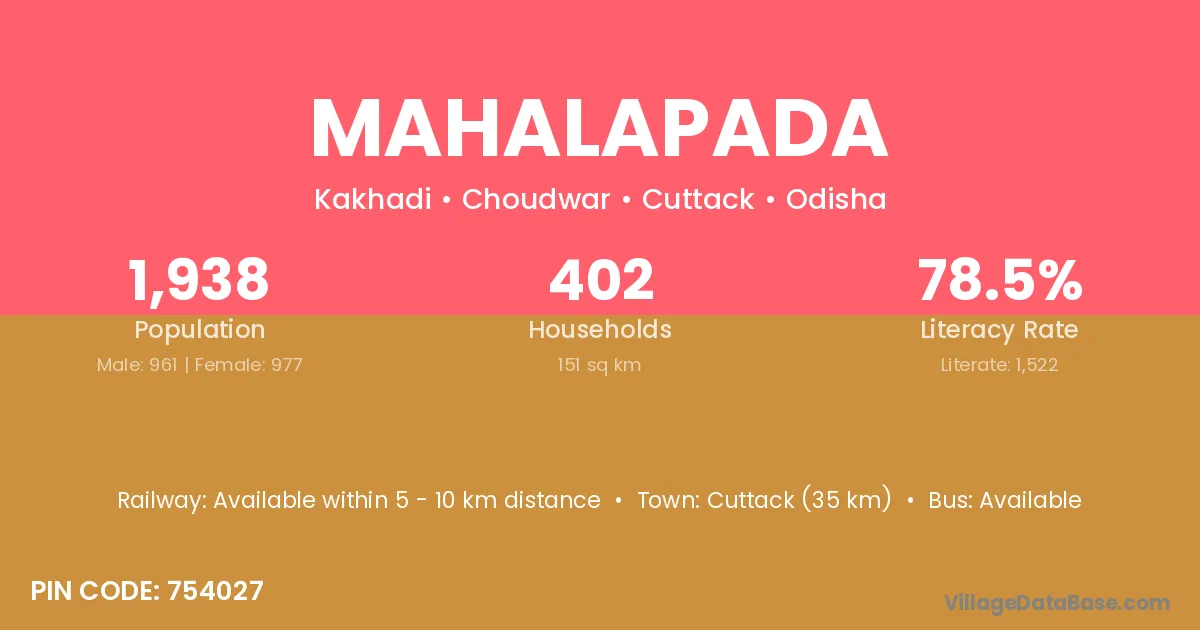 Cuttack (35 km) is the nearest town to Mahalapada village for major economic activities and is located approximately 35 km away.