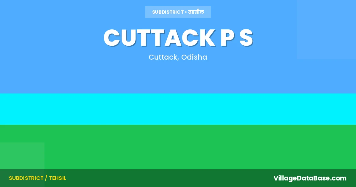 Cuttack P S is a town and Tehsil in the Cuttack district of the Odisha. In India, a Tehsil is a subdivision of a district responsible for the administration and revenue collection of a specific area within the district. Tehsils play a crucial role in the local governance structure, contributing significantly to the development and administration of their communities.