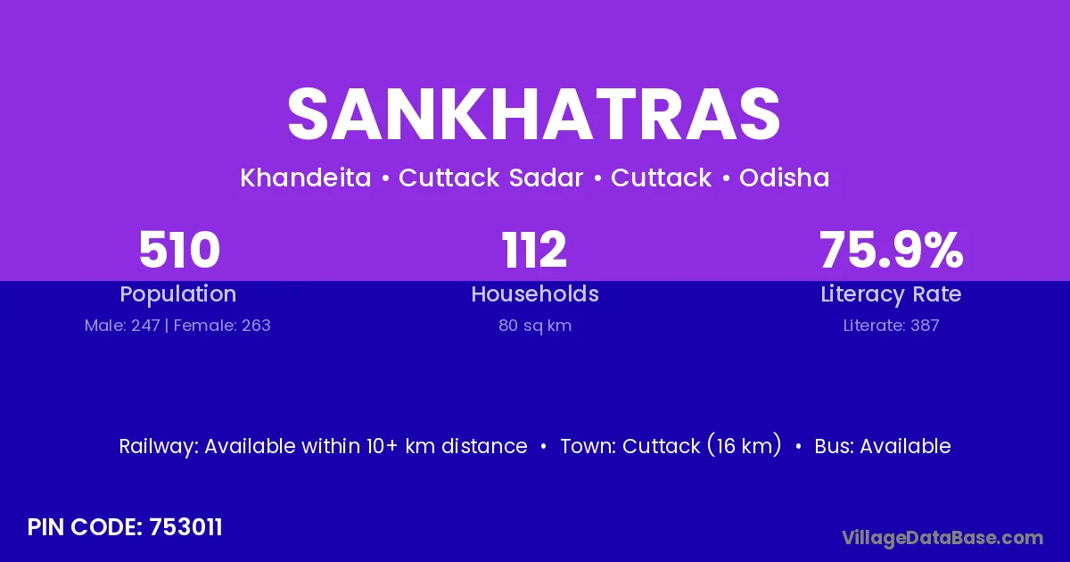 Cuttack (16 km) is the nearest town to Sankhatras village for major economic activities and is located approximately 16 km away.