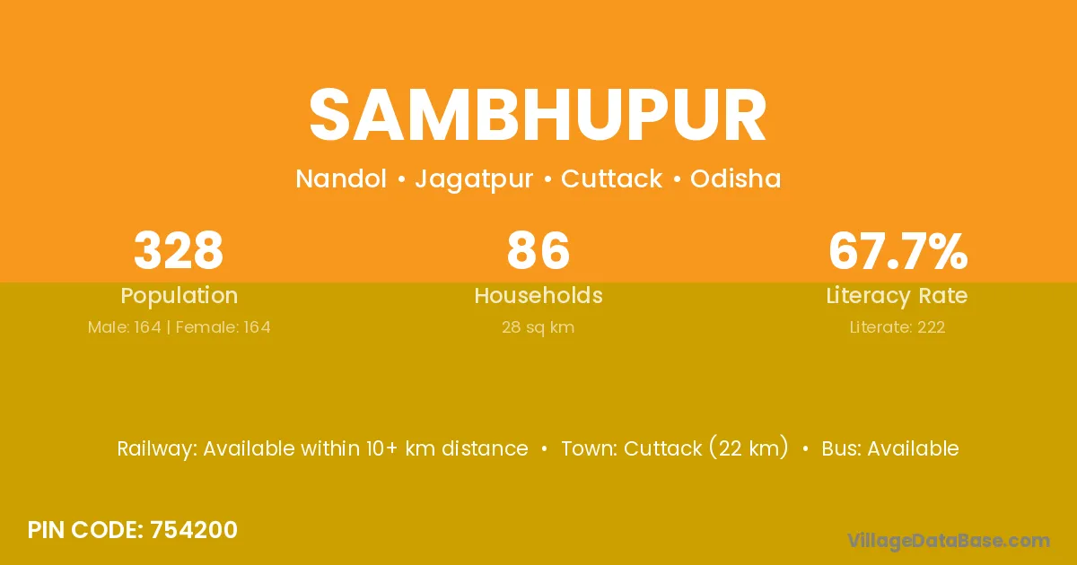 Cuttack (22 km) is the nearest town to Sambhupur village for major economic activities and is located approximately 22 km away.