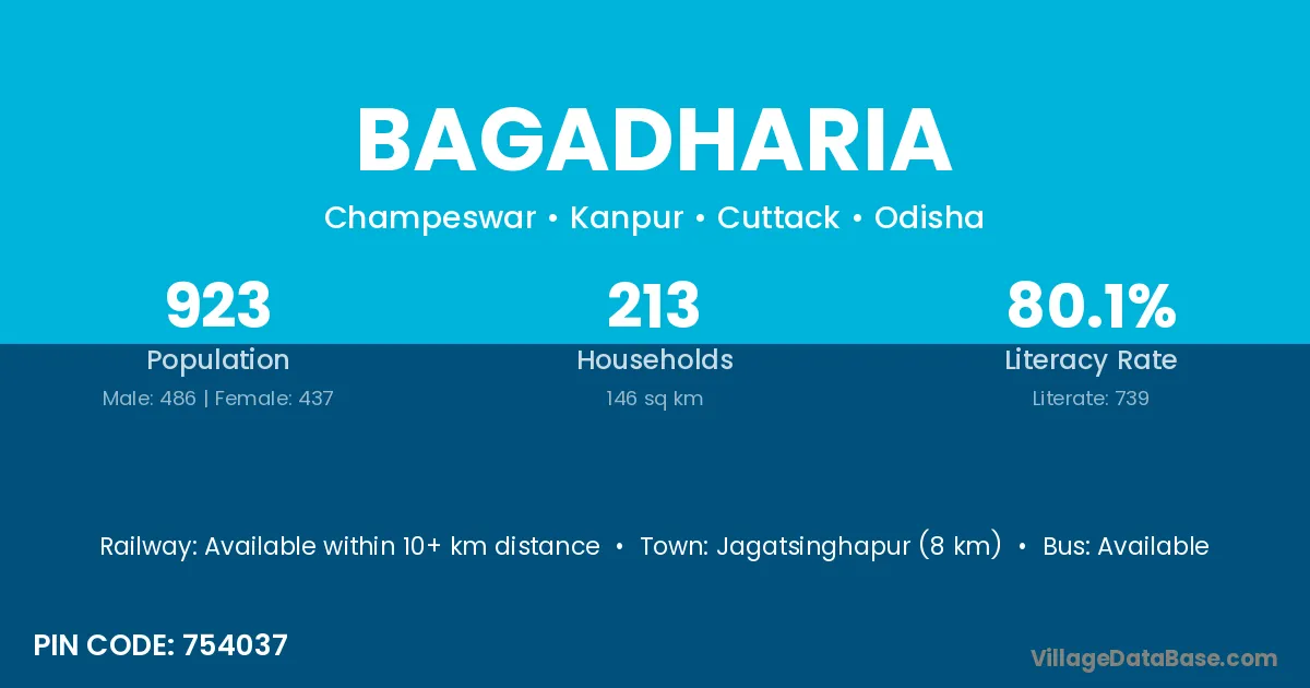 Jagatsinghapur (8 km) is the nearest town to Bagadharia village for major economic activities and is located approximately 8 km away.