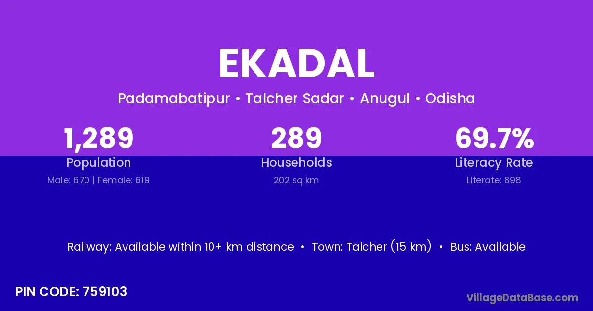 Jagatsinghapur (11 km) is the nearest town to Ekadal village for major economic activities and is located approximately 11 km away.