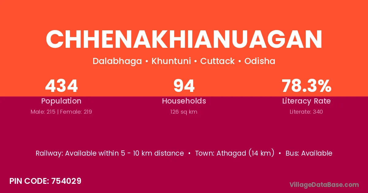Athagad (14 km) is the nearest town to Chhenakhianuagan village for major economic activities and is located approximately 14 km away.