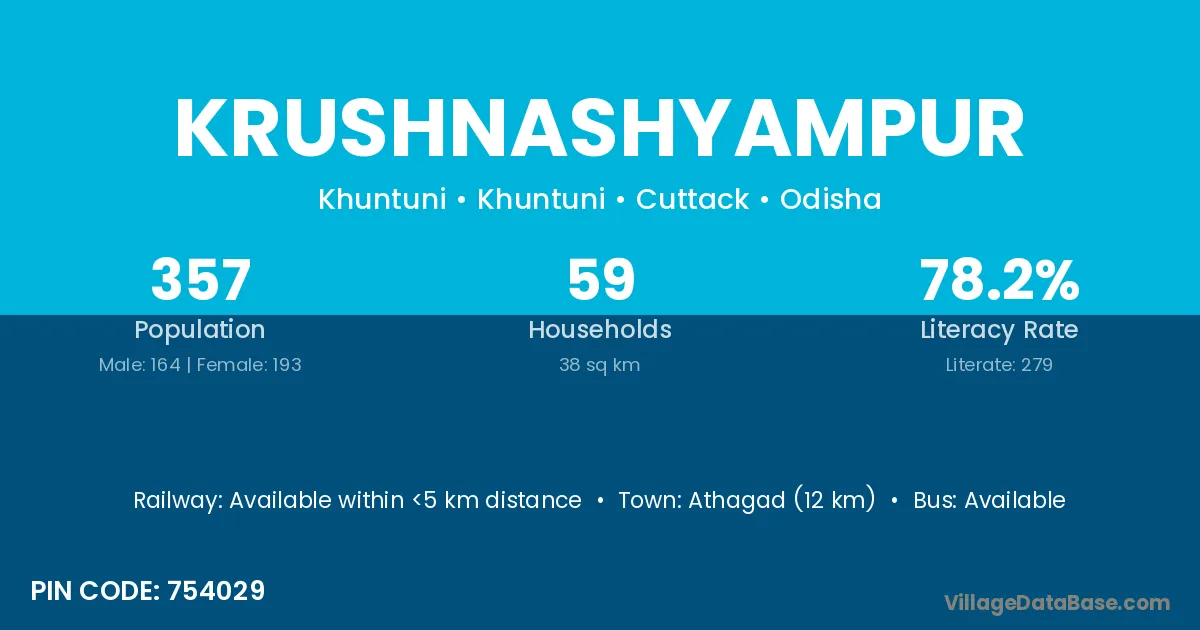 Athagad (12 km) is the nearest town to Krushnashyampur village for major economic activities and is located approximately 12 km away.