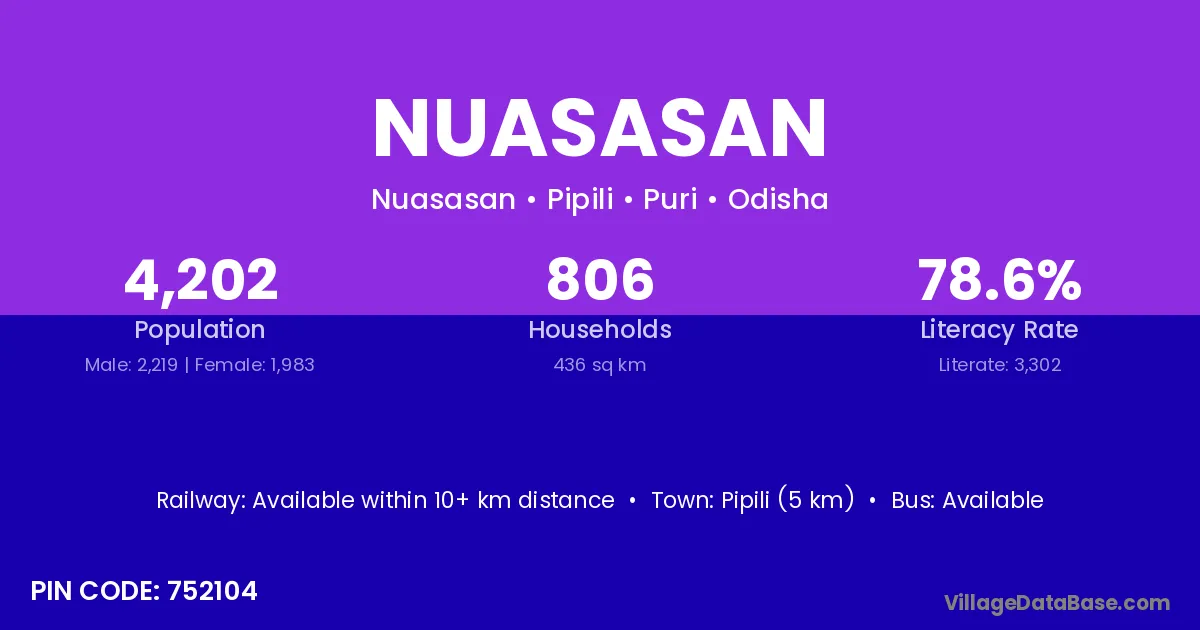 Athagad (18 km) is the nearest town to Nuasasan village for major economic activities and is located approximately 18 km away.