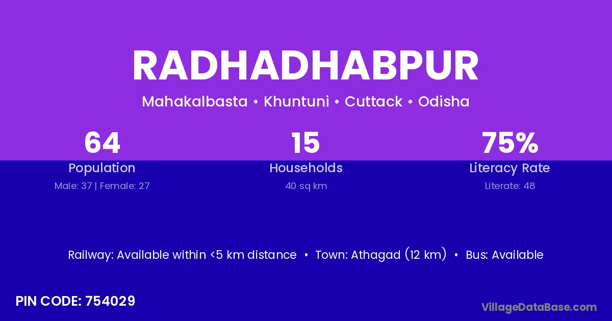 Athagad (12 km) is the nearest town to Radhadhabpur village for major economic activities and is located approximately 12 km away.