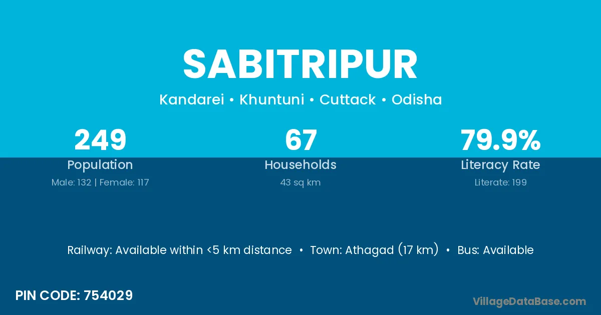 Athagad (17 km) is the nearest town to Sabitripur village for major economic activities and is located approximately 17 km away.