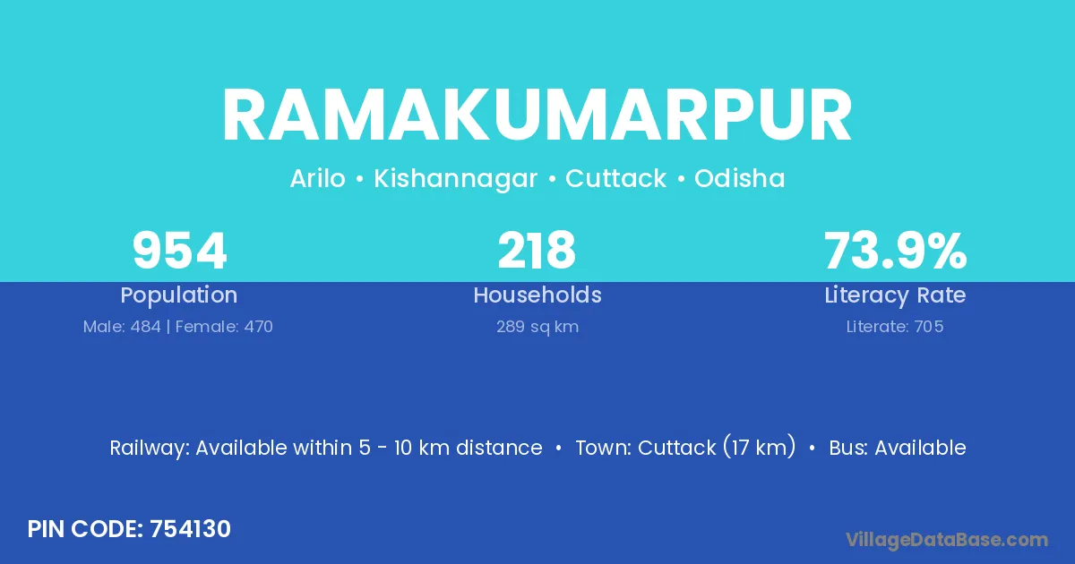Cuttack (17 km) is the nearest town to Ramakumarpur village for major economic activities and is located approximately 17 km away.