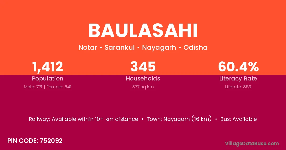 Jagatsinghapur (1 km) is the nearest town to Baulasahi village for major economic activities and is located approximately 1 km away.