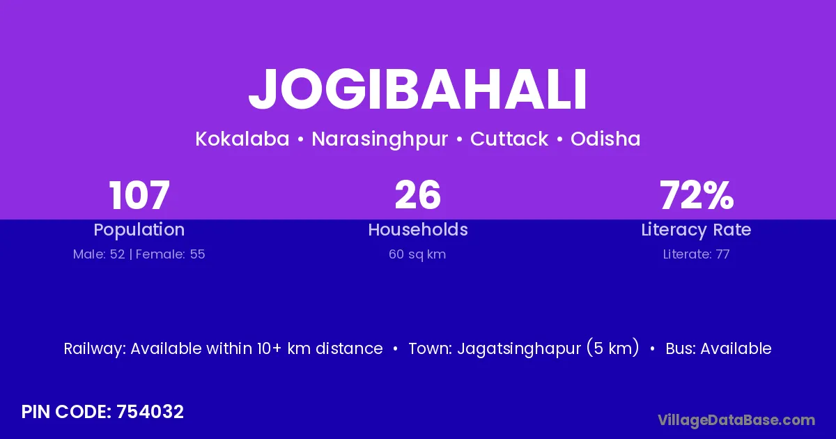 Jagatsinghapur (5 km) is the nearest town to Jogibahali village for major economic activities and is located approximately 5 km away.