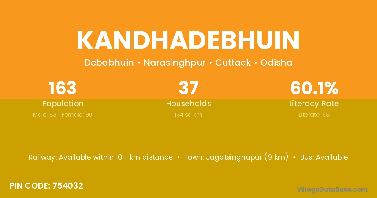 Kandhadebhuin village has a total population of 163 people, of which 83 are males and 80 are females.