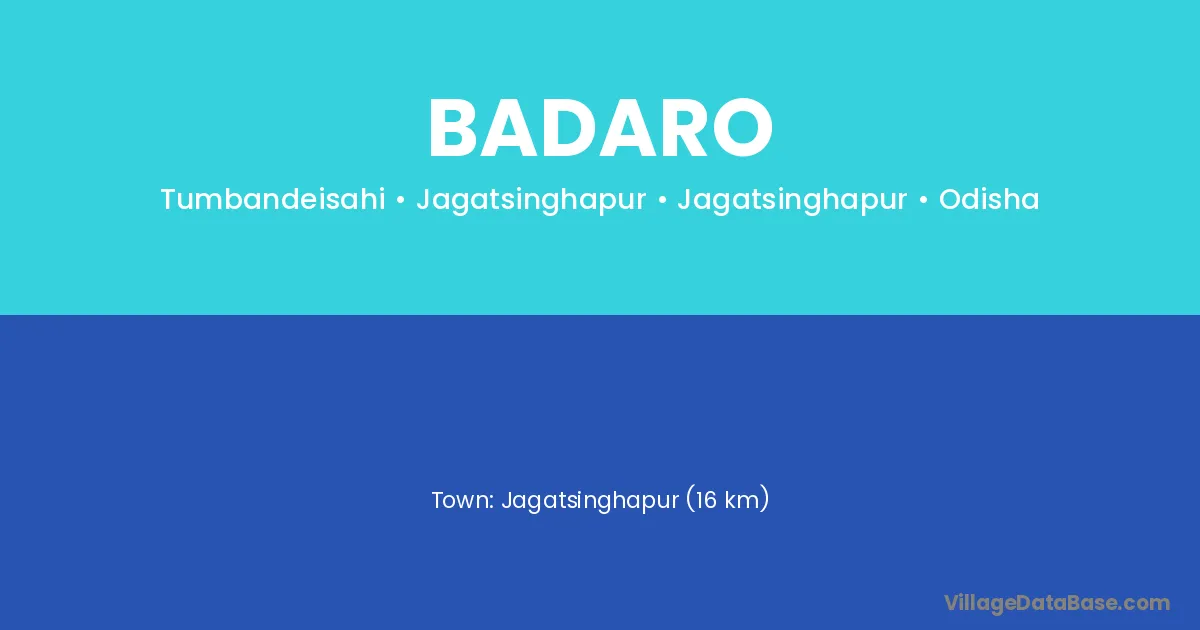 Cuttack (60 km) is the nearest town to Badaro village for major economic activities and is located approximately 60 km away.