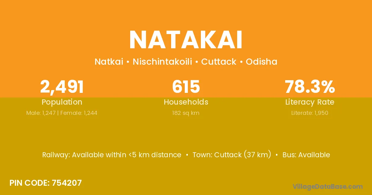 Cuttack (37 km) is the nearest town to Natakai village for major economic activities and is located approximately 37 km away.