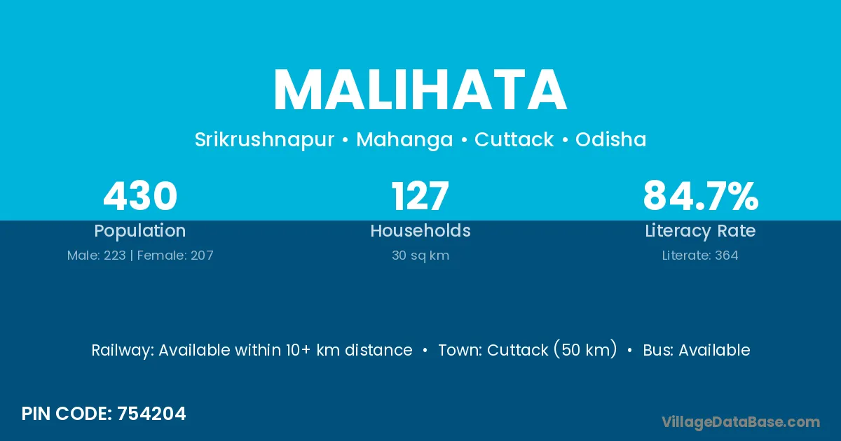 Cuttack (16 km) is the nearest town to Malihata village for major economic activities and is located approximately 16 km away.