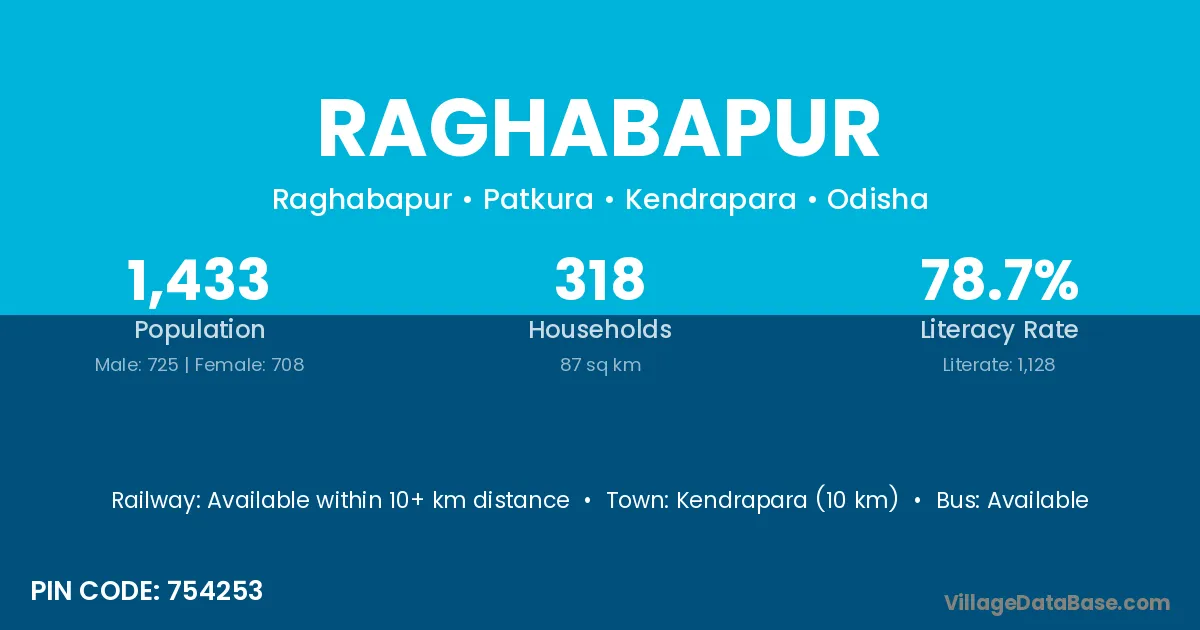According to Census 2011 information, the village code of Raghabapur village is 754202.