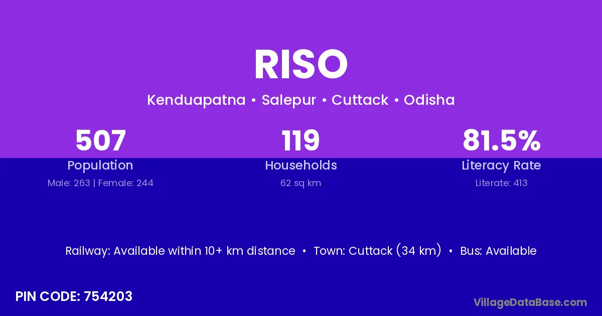 Cuttack (34 km) is the nearest town to Riso village for major economic activities and is located approximately 34 km away.