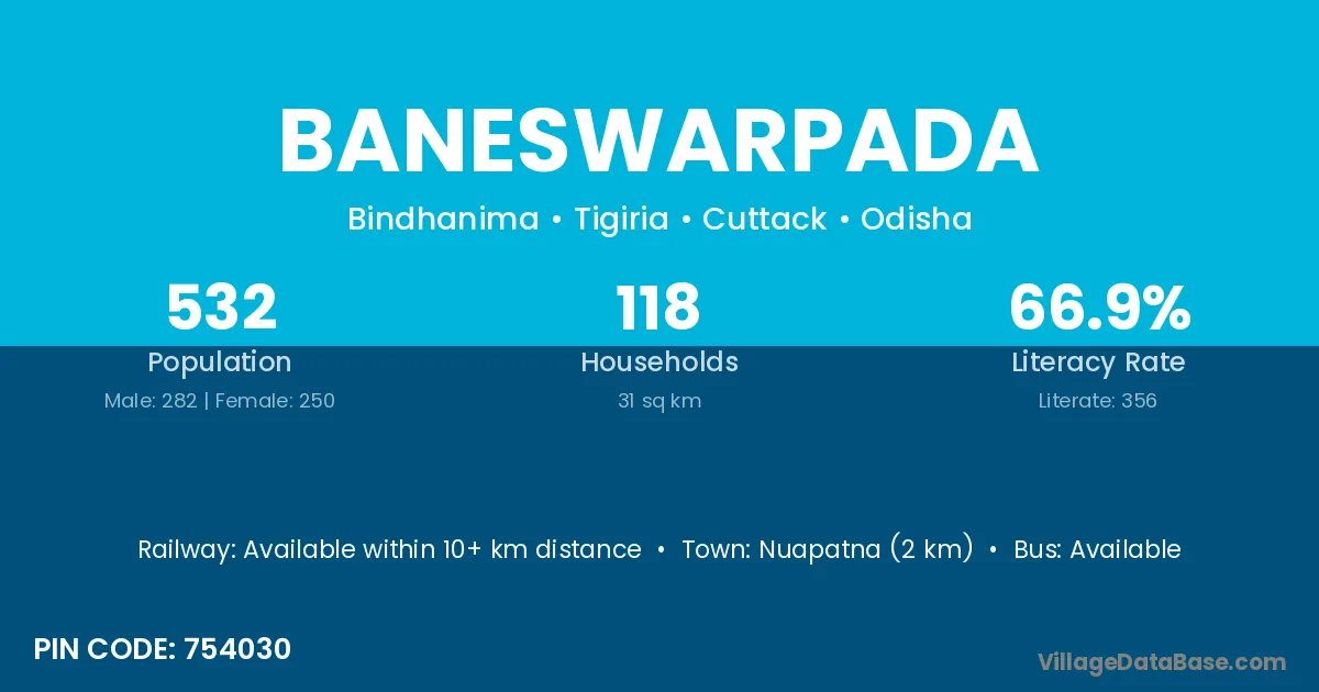 Nuapatna (2 km) is the nearest town to Baneswarpada village for major economic activities and is located approximately 2 km away.