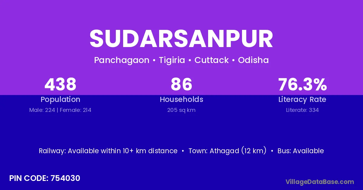 Athagad (12 km) is the nearest town to Sudarsanpur village for major economic activities and is located approximately 12 km away.