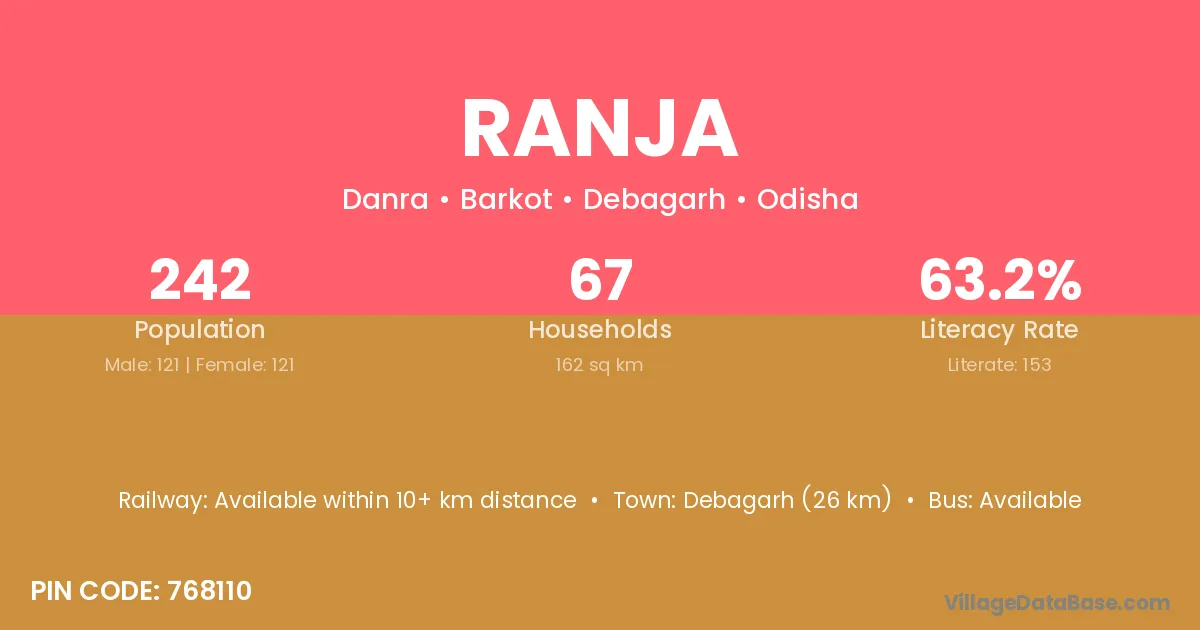 Debagarh (26 km) is the nearest town to Ranja village for major economic activities and is located approximately 26 km away.