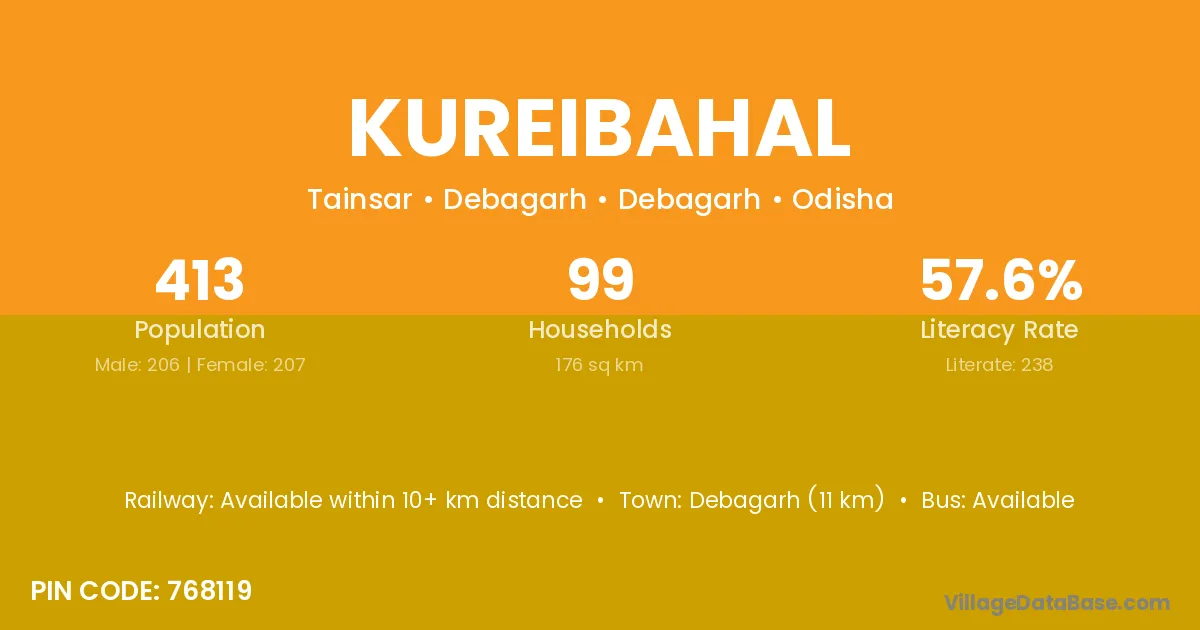 Debagarh (11 km) is the nearest town to Kureibahal village for major economic activities and is located approximately 11 km away.