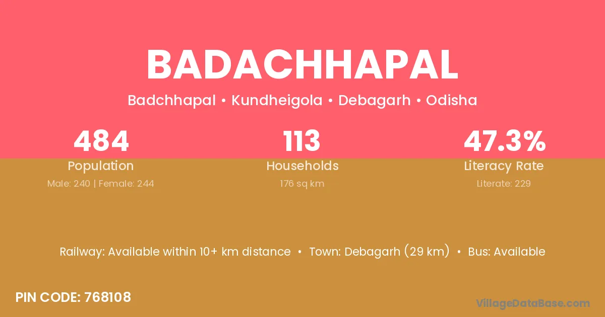 Debagarh (29 km) is the nearest town to Badachhapal village for major economic activities and is located approximately 29 km away.