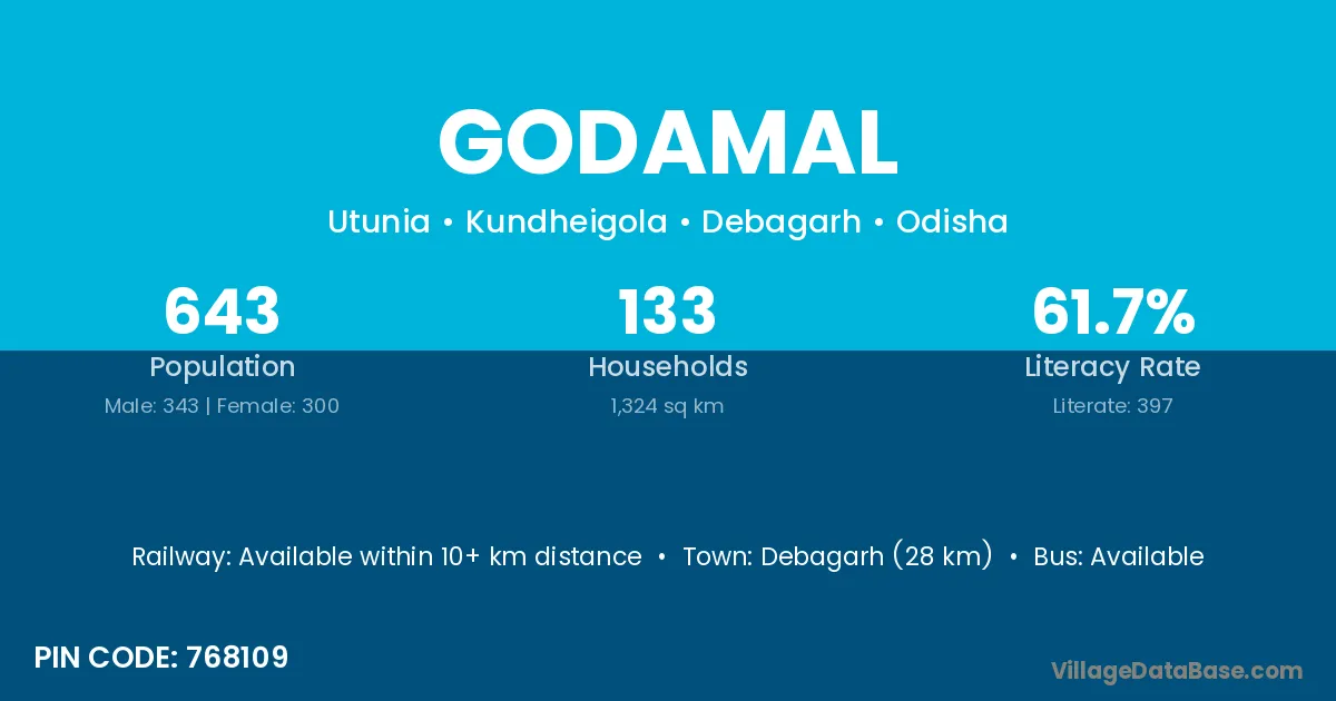 Debagarh (28 km) is the nearest town to Godamal village for major economic activities and is located approximately 28 km away.