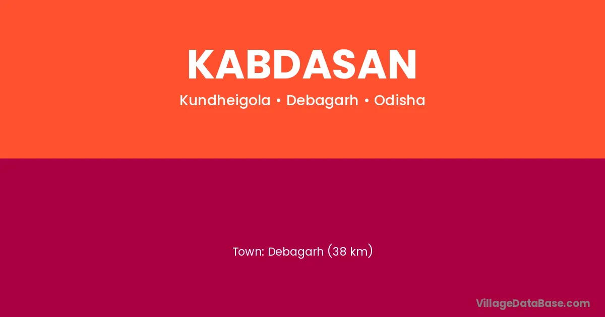 Debagarh (38 km) is the nearest town to Kabdasan village for major economic activities and is located approximately 38 km away.
