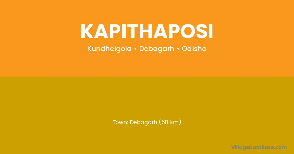 Debagarh (58 km) is the nearest town to Kapithaposi village for major economic activities and is located approximately 58 km away.
