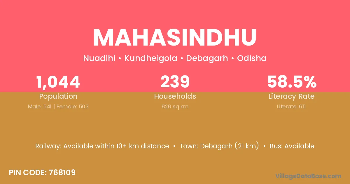 Mahasindhu village has a total population of 1,044 people, of which 541 are males and 503 are females.