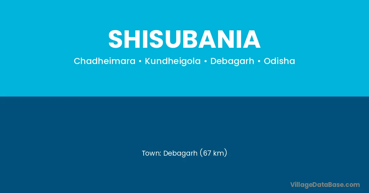 Debagarh (67 km) is the nearest town to Shisubania village for major economic activities and is located approximately 67 km away.