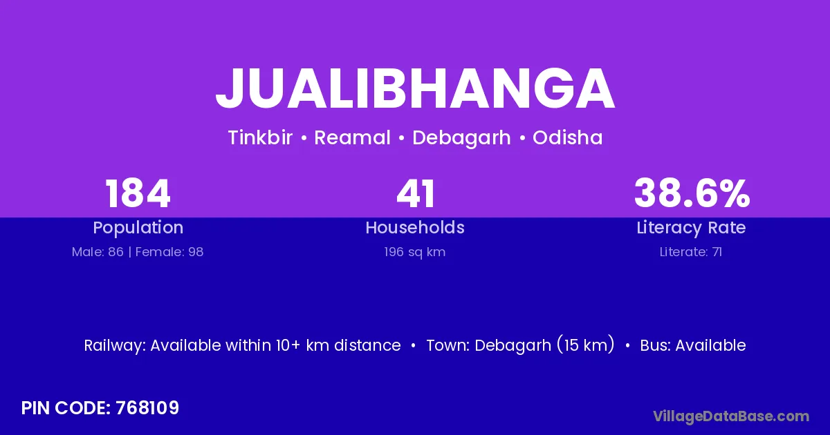 Debagarh (15 km) is the nearest town to Jualibhanga village for major economic activities and is located approximately 15 km away.