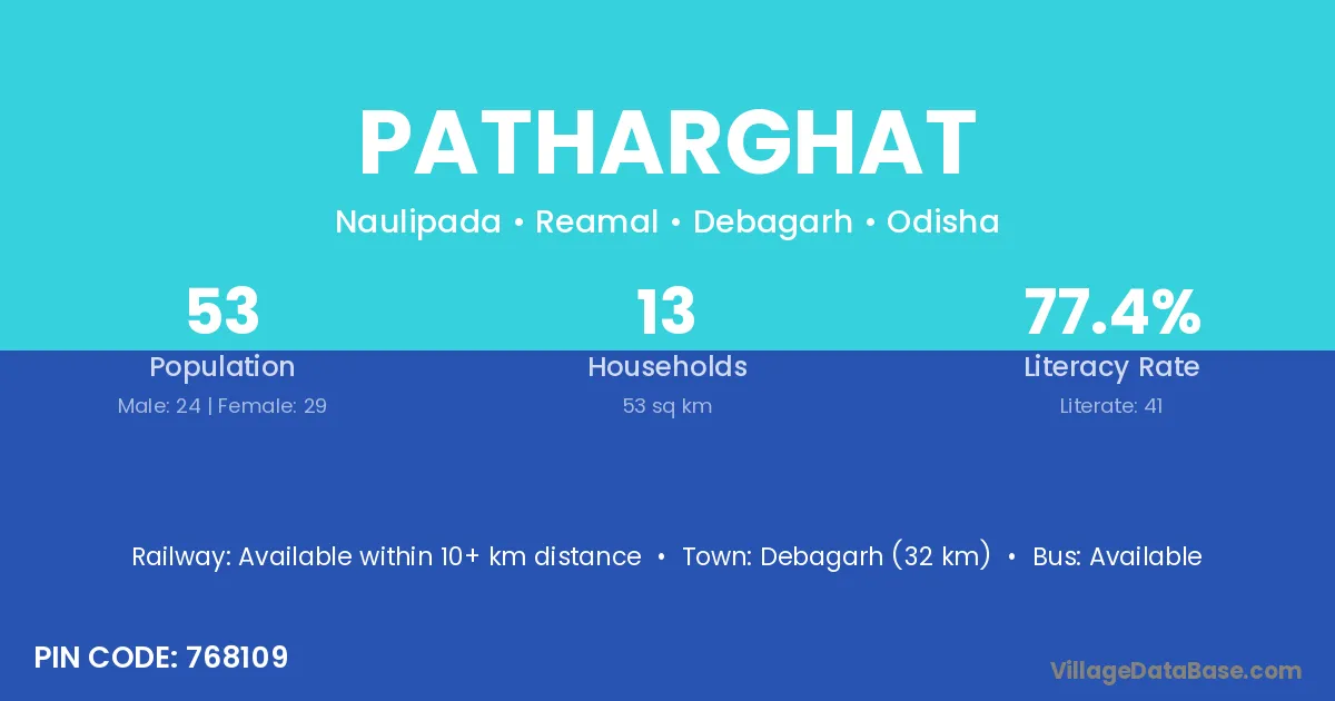 Debagarh (32 km) is the nearest town to Patharghat village for major economic activities and is located approximately 32 km away.