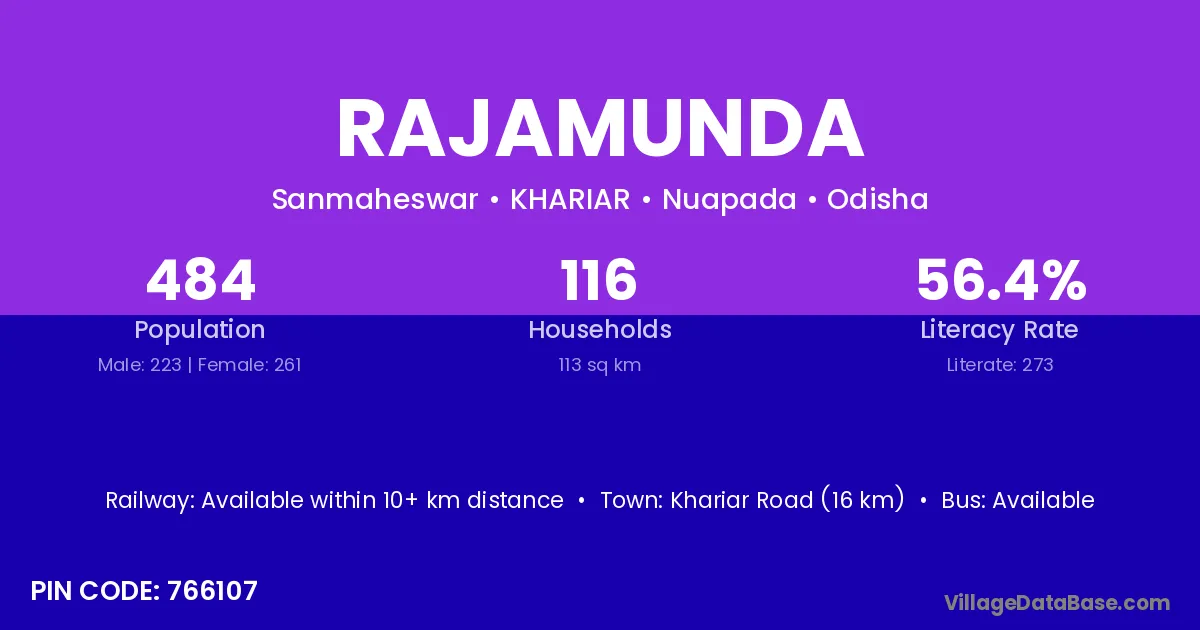 Debagarh (33 km) is the nearest town to Rajamunda village for major economic activities and is located approximately 33 km away.