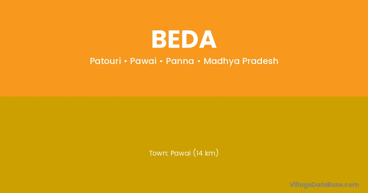 Dhenkanal (17 km) is the nearest town to Beda village for major economic activities and is located approximately 17 km away.