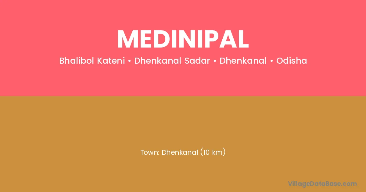 Dhenkanal (10 km) is the nearest town to Medinipal village for major economic activities and is located approximately 10 km away.