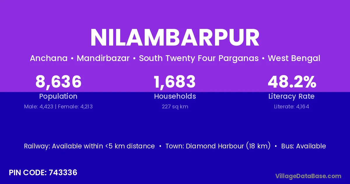 The literacy rate of Nilambarpur village is 84.21%. Male literacy stands at 86.21% and female literacy at 82.14%.