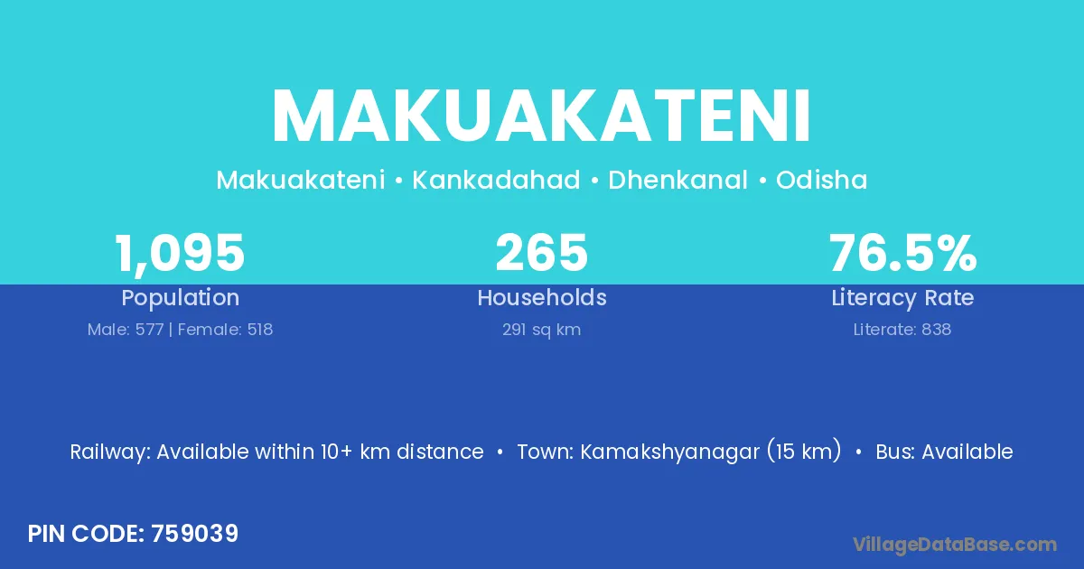 Kamakshyanagar (15 km) is the nearest town to Makuakateni village for major economic activities and is located approximately 15 km away.