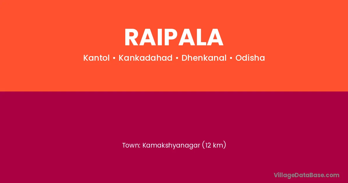 Kamakshyanagar (12 km) is the nearest town to Raipala village for major economic activities and is located approximately 12 km away.