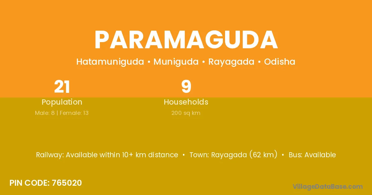 Digapahandi (90 km) is the nearest town to Paramaguda village for major economic activities and is located approximately 90 km away.