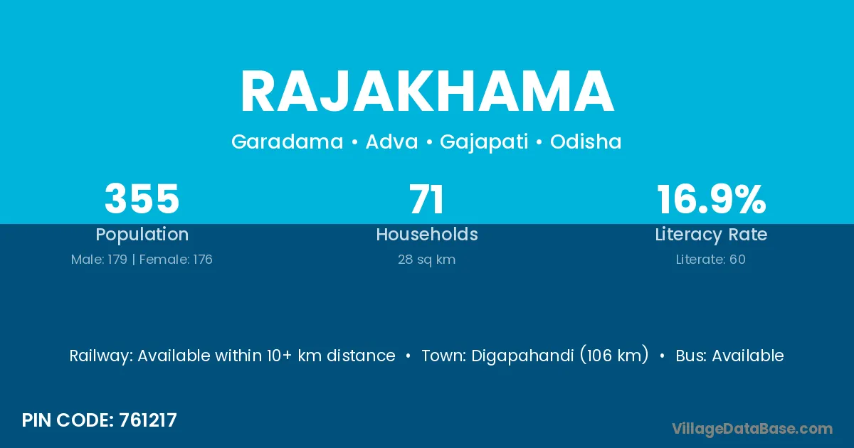 Rajakhama village has a total population of 355 people, of which 179 are males and 176 are females.